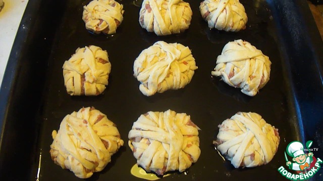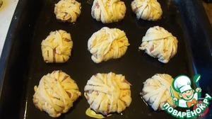 5. Выкладываем клубочки на смазанный противень. И запекаем в духовке 30-35 минут при температуре 200 градусов. Тесто должно подрумяниться.
