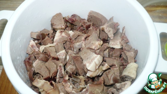 Сердце помыть, очистить от жира, либо пленок, в общем от всего лишнего. Отварить в слегка подсоленной воде до мягкости. Для салата можно использовать так же свиное, индюшиное или куриное сердце.