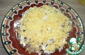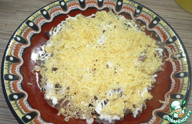 Сверху посыпать тертым сыром. Майонезом не смазывать.