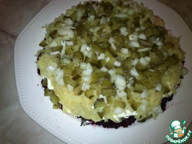 Вкусный зимний салат из варёных овощей, похож на селёдку под шубой, но это никак не связано с селёдкой. красивый, чтобы угостить гостей и полезный.