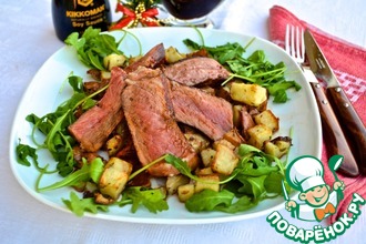 В сковороде разогреть половину масла и обжарить на нём мясо до румяной корочки