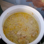 6. За минут 6 до окончания варки сыплем вермишельку ( у меня она варится 3 минуты, но я всегда оставляю время с запасом) и вливаем заранее взбитое яйцо, пол минутки кипит, потм выключаем и даем настояться.