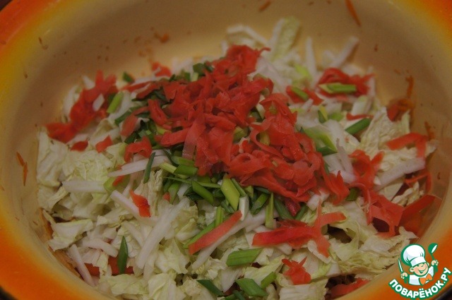 Добавить маринованный корень имбиря, нарезанный кусочками.