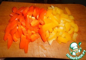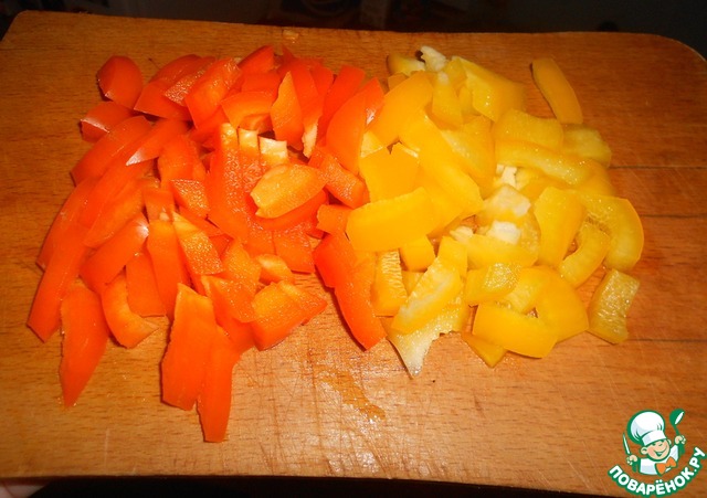 Вымыть, очистить перец, нарезать небольшими кубиками.