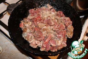 Мясо солим, перчим, добавляем травку по вкусу - майоран, базилик сушёные, обжариваем до полу готовности в разогретом на сковороде оливковом масле.
