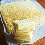 Очень вкусные пироженки с нежной песочной основой и сладкой начинкой из творога и пудинга. Можно использовать в виде торта или нарезать на порционные кусочки. Этот рецепт можно взять за основу и разнообразить различными добавками — изюм, орехи, корица, различные ягоды.