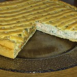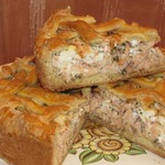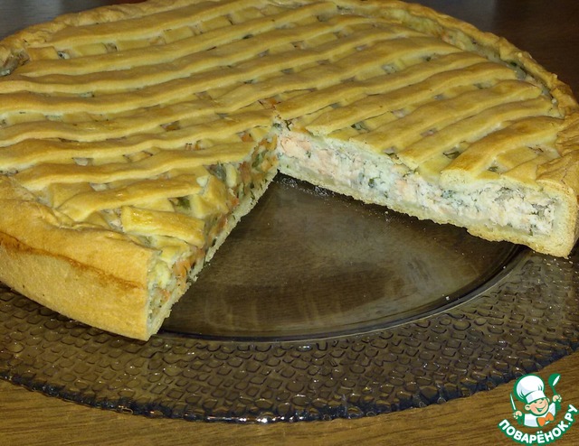 Утверждают, что это тот самый пирог, который пекла героиня Натальи Гундаревой в фильме "Одиноким предоставляется общежитие" Помните: "Она, она... и пирог её, фирменный..." Ну, не знаю, где в советские времена Вера Николаевна могла разжиться сливочным творожным сыром?.. Да и пирог там слишком большой... Но, тем не менее, предлагаю рецепт вашему вниманию. В рецепте используется слабосоленая форель, я взяла свежую и присолила сама, за час до приготовления пирога. А увидела я этот пирог в передаче "Контрольная закупка", давала его шеф-повар Гаяне Бреиова, но об этом мы еще поговорим немного ниже.