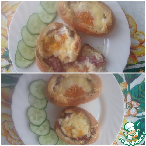 Спасибо.Можно запечь и в микроволновке,только булочки не будут хрустящими.Если запекать с целым желтком ,то обязательно проткните слегка желток(я протыкала кончиком ножа),чтобы он не взорвался.При мощ.800готовила 2- 2,5 мин.,потом сверху сыром и ещё на 1 мин.Оринтируйтесь по своей микре,главное не передержать,чтобы булочки не стали сухими.Но