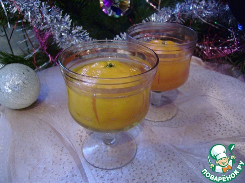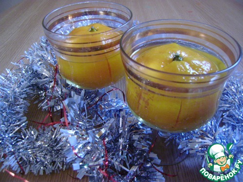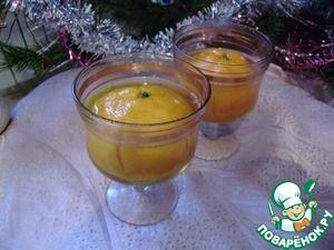 Выкладываем мандарины в бокалы и наливаем сироп. Кушать можно с кожурой, а можно чистить. Но подавать желательно их целенькими.