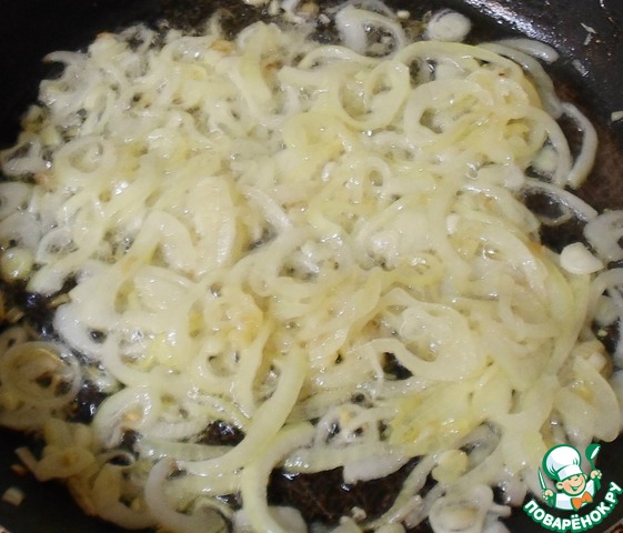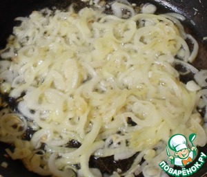 Нарезать лук полукольцами, обжарить на оливковом масле;