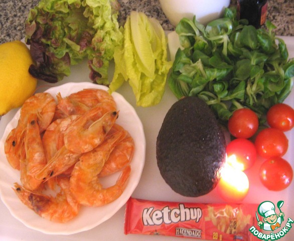 Необходимые продукты. Если креветки сырые, их необходимо отварить в течение 1-1,5 минут в воде с добавлением лаврового листа и белого вина.