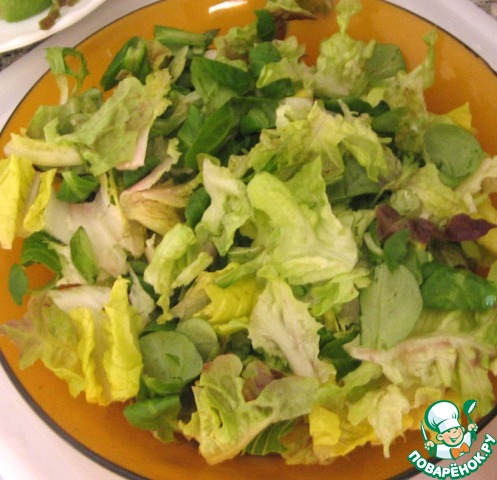 - Листья салата / Салат (можно использовать несколько видов) — 1 пуч.