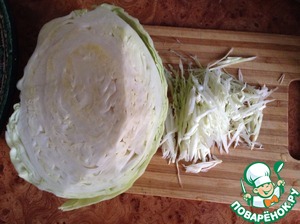 В этот салат все продукты берем в равном количестве. (Например стаканом). Мелко шинкуем капусту.