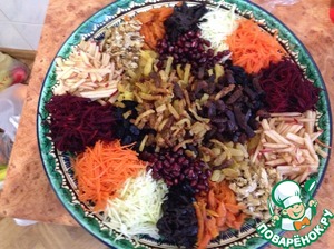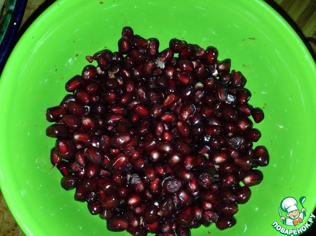 Гранат чистим и также, горкой на блюдо. Я чтобы меньше времени затратить на приготовление. Гранат чищу с вечера и оставляю в холодильнике.