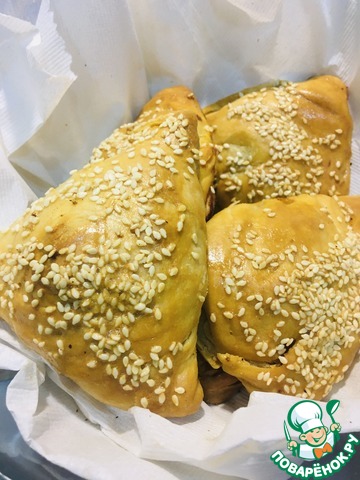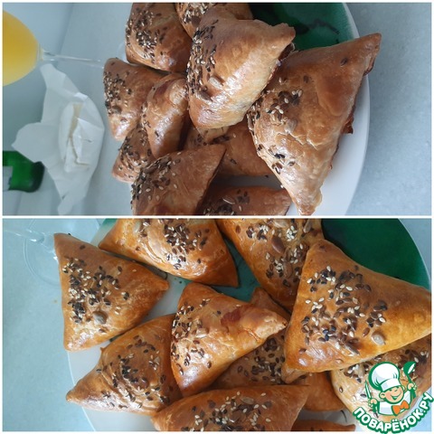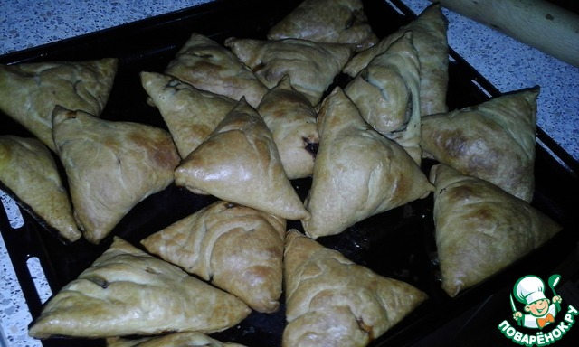 Выпекаем при температуре 200 градусов 40 минут. За 10 минут до готовности можно смазать самсу взбитым с водой желтком.