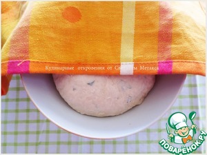 Постепенно влить молоко в муку и замесить мягкое эластичное тесто. Замешивать в течении 5 минут. Накрыть тесто и оставить в теплом месте на 1 час.