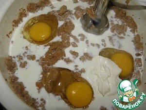 Затем постепенно прибавить яйца, сливки и сахар ( я еще иногда добавляю 1 ст. л сметаны.., это по желанию) все взбить.
