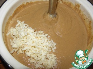 Сыр натереть, и так же добавить в массу, еще раз хорошо взбить.