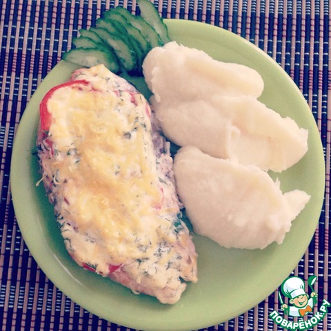 Посыпаем сыром средней твердости. И в духовку на 30 минут.