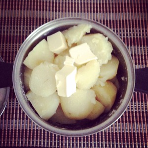 Картофель вымыть горячей водой, очистить, положить в кастрюлю. Чтобы картофель получился рассыпчатым и вкусным, очистив, залейте его кипятком и варите на медленном огне под крышкой. Если варить на среднем или, еще хуже, на большом огне - картошка снаружи разварится, а внутри останется сырой - получите пюре с комками. Воды много не лейте, пусть картофелинки некоторые торчат. Их можно потом перевернуть. Не хорошо когда картошка впитает в себя много воды. Воздушности не будет точно, т. к. вода сделает пюре тяжелым и плотным.