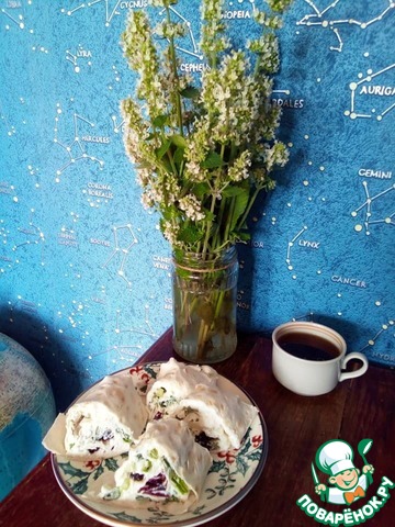 Нарезать на порционные рулетики, разложить на тарелочку.