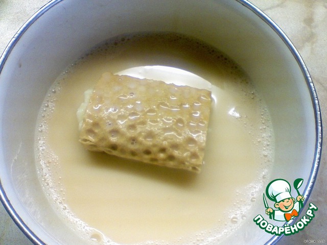 Обмакнуть с двух сторон "книжку" во взбитых яйцах.