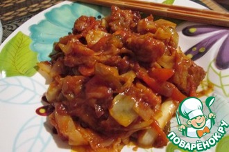 Тушить под крышкой 30 минут, добавляя по мере необходимости воду ("розочки" будут ее впитывать).