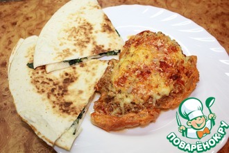 Давнишний рецепт из советских времен. Вроде бы кушанье имеет грузинские корни, но именно под таким названием появилось в нашей семье и много лет регулярно готовится. Простое, вкусное и довольно симпатичное по виду блюдо.