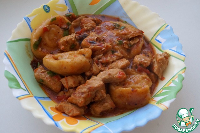 И в порядке живой очереди лук-перчик-томат закинули все это в казан. -