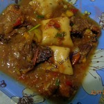 Процессы обжарки мяса и тушения овощей, таким образом, шли практически параллельно, «ноздря в ноздрю», и финишировали одновременно. Ну, что ж, самое время их объединить в казанке и весело тушить, периодически помешивая и добавляя немного воды, если процесс переходит в жарку.