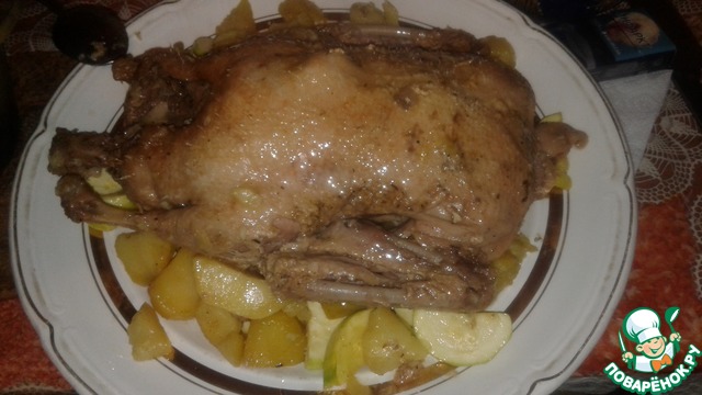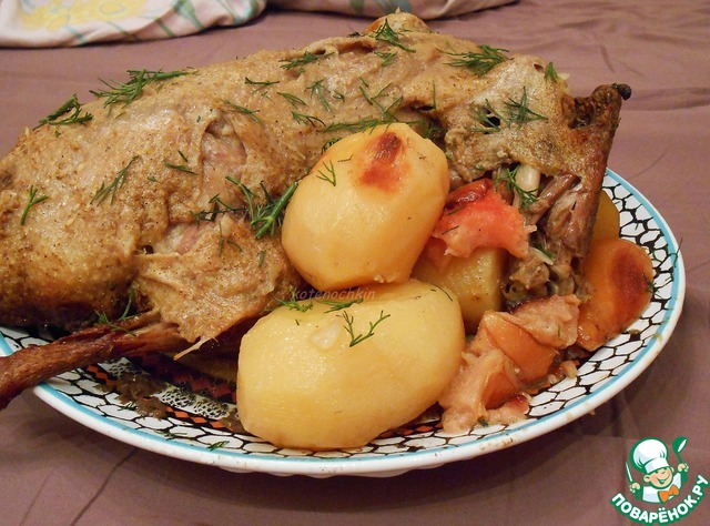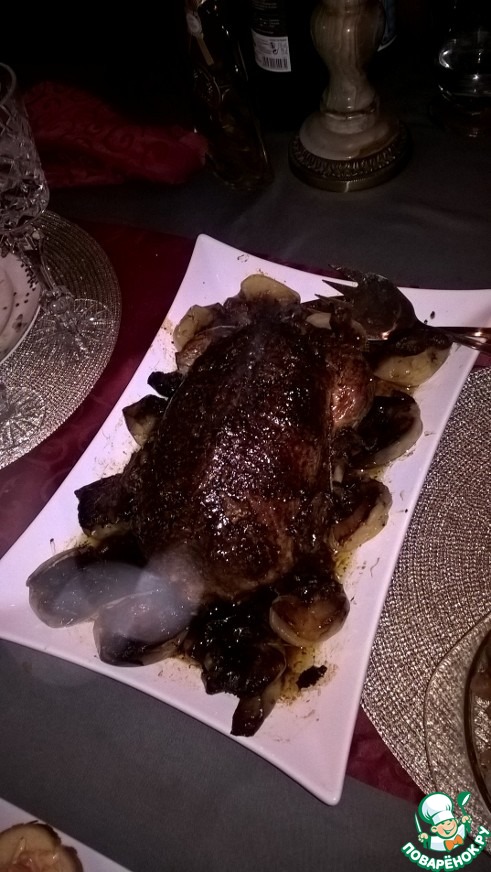 Утка, запеченная в духовке, с яблоками. Рецепт содержит минимум ингредиентов, готовится просто, а получается очень нежно и вкусно. А главное без специфического вкуса, который обычно дает утиное мясо. Выкладываю рецепт по просьбе поваренка - Оли (акчуч).