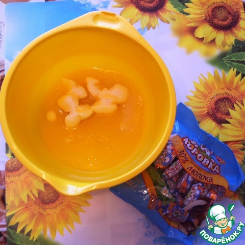 - Конфеты (в тесто,оставить 5 конфеток для помадки.Конфеты"Коровка с молоком") — 250 г
