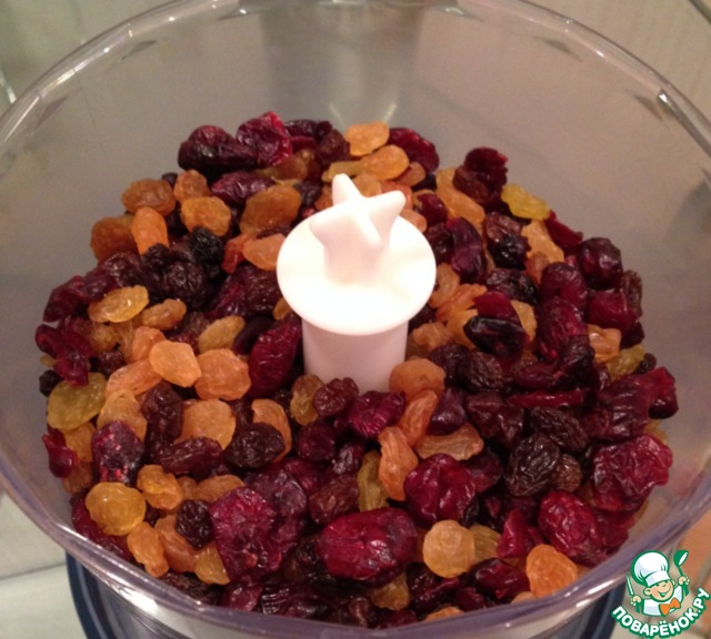 Первым делом нам нужно сделать так называемые подготовительные работы. Немного измельчить наши сухофрукты (можно и ножом, конечно), но я выбрал более быстрый вариант - блендер :)