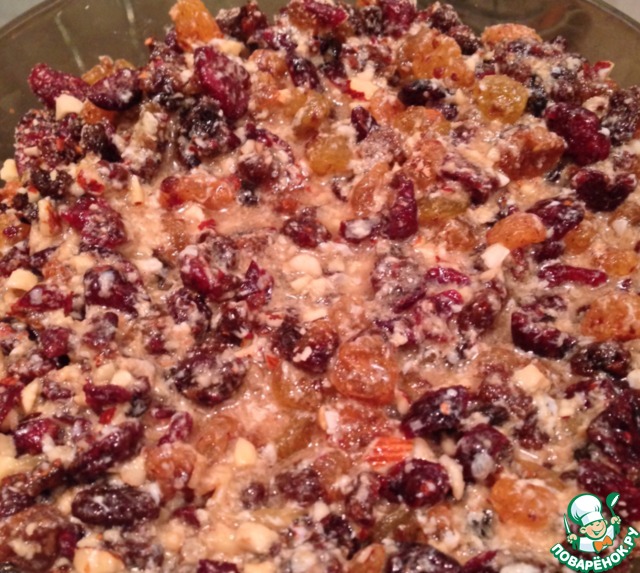 Предыдущие шаги проделаны; далее делаем заливку для смеси наших сухофруктов и орехов. Для этого в емкости смешиваем ликер и апельсиновый сок. Заливаем этим нашу массу, перемешиваем и оставляем "отдыхать" на полтора-два часа. На этом этапе всем настоятельно рекомендую почувствовать запах Рождества :) Хотя... вы от этого никуда не денетесь :) В то время, как наша основа-начинка настаивается можно вымыть посуду, которая уже ждёт в раковине ;)