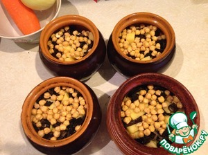 • Ставим в духовку на час. Проверяем готовность по гороху, если мягкий, то все готово!