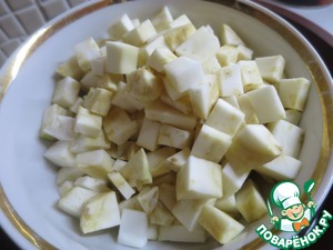 Картофель и корневой сельдерей почистить, нарезать кубиками.