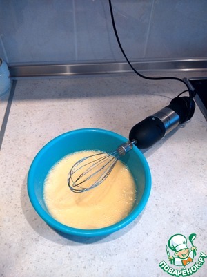 К яйцам добавляем мед, 1 стакан сахара, 1 десертную ложку соды, гашеной уксусом. Взбиваем.