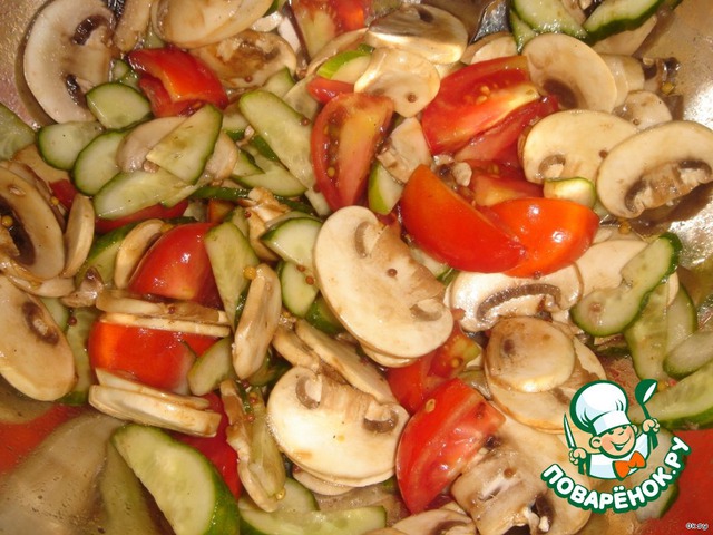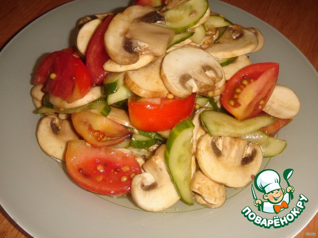 Вкусный салат, в котором шампиньоны не подвергаются никакой тепловой обработке.