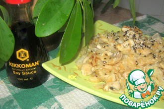 Шампиньоны порезать тонкими пластинками, полить соком одного лайма и перемешать.