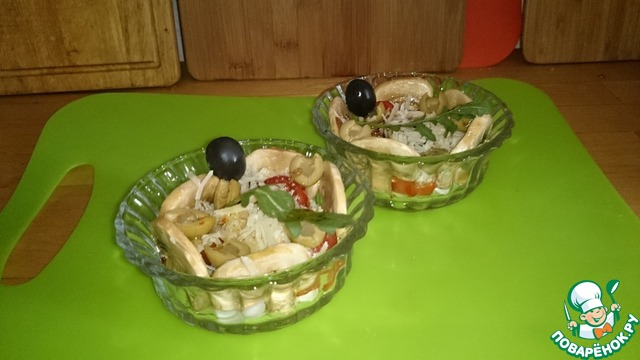- Шампиньоны (сырые-режем на пластинки) — 10 шт