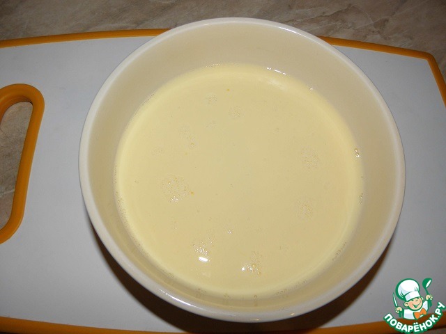 Два яйца, и белок 3го яйца перемешать со сливками,