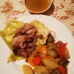 Постарайтесь выгрузить эти овощи очень аккуратно. Оставьте в казане максимум сокобульона. А распаренные, исходящие мясным духом овощи тоже выкладываем на отдельную тарелку.