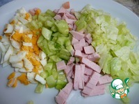 Все продукты для салата порезать кубиками.