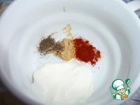 В чашечке смешать сметану, горчицу, соль, перец. С солью будьте внимательны.
