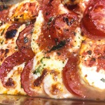 Выложить в форму для запекания, чередуя ломтики сыра и помидоров.