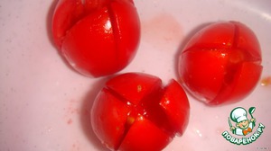 Помидоры нарезать крест-накрест, осторожно вынуть сердцевину