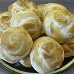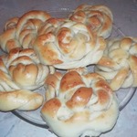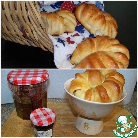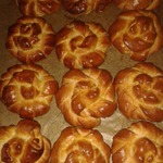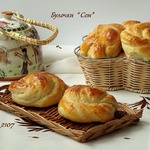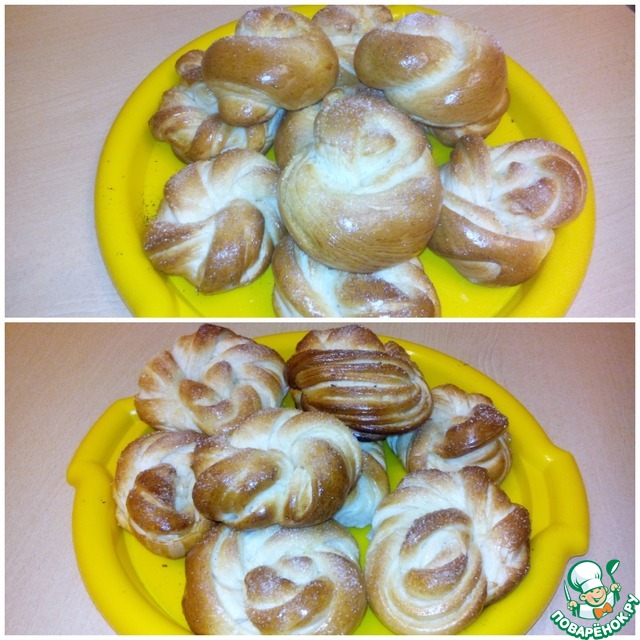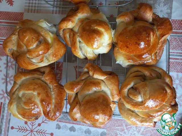 Смазываем их взбитым желтком и оставляем на 10-15 минут. После чего выпекаем булочки при температуре 200 градусов 15 минут