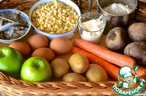 Ингредиенты для «Анчоусы под шубой на кукурузной лепешке»: