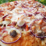 Берем 2 ст. ложки майонеза и добавляем туда 2 яйца, сбиваем миксером до получения пены, и заливаем, примерно 3 -4 ст. ложки на одну пиццу, равномерно по поверхности. Разогреваем духовку до 200 -250 градусов, кладем нашу пиццу туда на 10 -15 минут, как только корка теста станет румяной и хрустящей можно снимать. Разрезаем на 4 -8 частей и подаем к столу. Есть в горячем виде. Приятного аппетита
