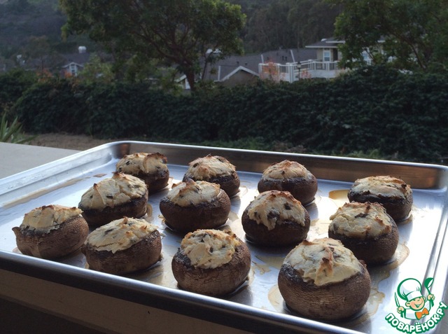 И отправляем в духовку минут на 20! Грибы дадут сок, шапки зарумянятся - значит, готовы. В самом начале начинка очень горячая, так что аккуратно. Приятного аппетита! :)